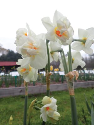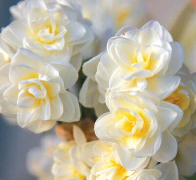 Narcissus Abba – Easy to force and fragrant with five or six white flowers.