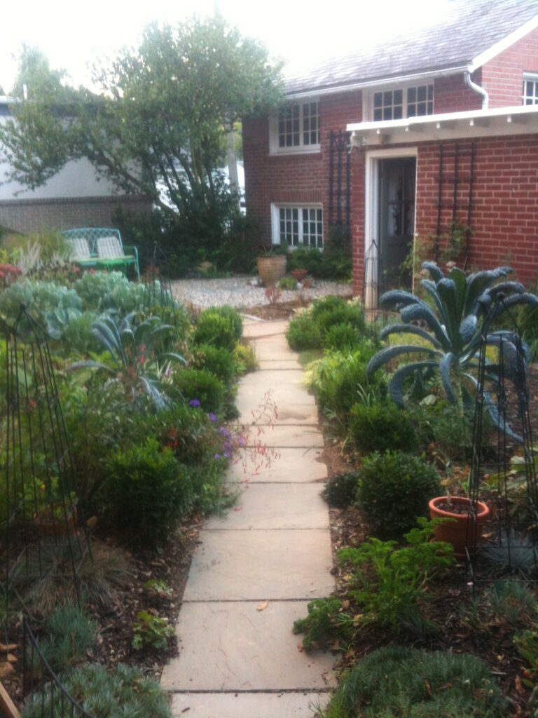 Let’s not forget the constant drumbeat of “Eat More Plants”, or in Motherspeak, “Eat your veg.” Fruit of course, isn’t a problem, it’s no challenge to consume as much as possible as often as possible, as my grandson would happily agree — I swear he’ll turn into a strawberry. Green and leafy can, however, be troublesome, but picked from the garden and caressed with olive oil, accompanied by a freshly harvested tomato…well. What’s not to like? In my various suburban gardens over the past twenty years, I’ve tucked vegetables among the ornamentals (gathering edibles from between the yuccas in Texas was rather a hazard-filled). Plants seem to do better together among varied friends than in segregated seating. And that’s another thing — companionship of shared interests is another life booster, and aren’t gardeners great joiners, sharers and commiserators, ie. the best of friends?