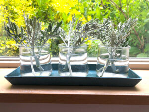 Let’s face it, a real joy of gardening comes from buying plants. However, consider taking cuttings from tried-and-true plants in your own garden or greenhouse. It’s a game of numbers. This replication allows you to design with large drifts of the same plant, or repeat certain plants in various containers in order to visually unite a grouping. These multiple cuttings can be placed on a greenhouse bench, or in a sunny windowsill while they are growing up.