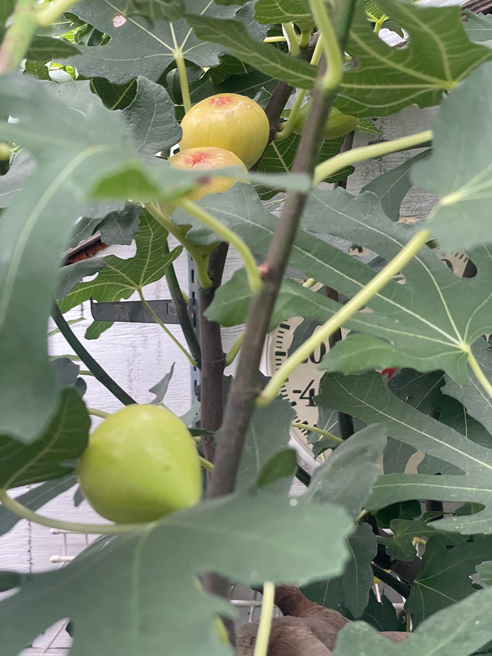 In my greenhouses, the fruit trees are a little more exotic. Figs are one much-loved crop. The Peter’s Honey fig tree in my unheated greenhouse is quite large and produces many figs used in salads and for jam and to eat right off the tree. I also give them to neighbors and friends. My Chicago Hardy and Brown Turkey fig trees have yet to produce fruit, but they’re growing outdoors and so must weather our sometimes harsh winters. I have to admit that with the number of figs on Peter’s Honey, I’m not sure I need more figs, but, as a gardener, I want the plants to produce fruit.