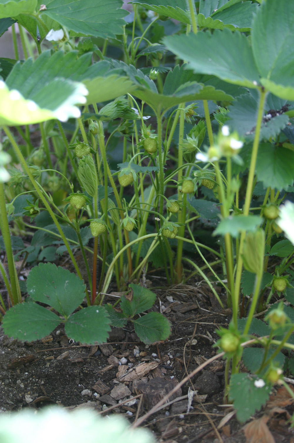 Of course, not all fruit is grown on trees. In a bed in my unheated greenhouse I also have everbearing strawberry plants that I didn’t have room for in my outdoor garden. They grow faster than fruit trees and produce tasty fruit in the second year. The first year you should pick the fruit off to allow the plants to grow to a reasonable size. They’re now growing so profusely with many runners that can produce new plants. I’ve found that having an outdoor crop and also a greenhouse crop almost doubles my strawberry-picking season. In addition to red strawberries, I’m also trying white ones set in pots. They’re said to be gourmet, although I’m not yet convinced that a white strawberry could ever top a bright, juicy red one. But I’ll just wait and see. As with other kinds of greenhouse gardening, experimentation is a big part of the experience.