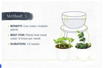 “Should the water-supply at any time run very low and plants need water badly, an excellent plan is to fill with water a bottle, a jar, or can (according to the size of the plant), and stand it close to the patient, placing a thread of wool, or a small skein of wool as the case may require, in the bottle or jar, and leaving it to trail over the ground near the plant. The water will be soaked up by the wool, and will slowly and surely moisten the ground … in the case of some rock-plants which resent being alternately soused and grilled, it is essential.”