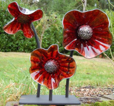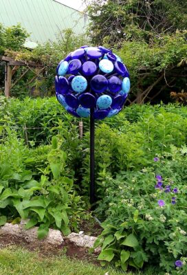 And another friend, glass artist Barabra Sanderson, always uses powder-coated metal to support her creations. “I personally don’t like rusty metal in my garden art,” she says. “I know quite a few people do but I just think it looks messy. So, the powder coating is very long-lasting and prevents rust from forming.”