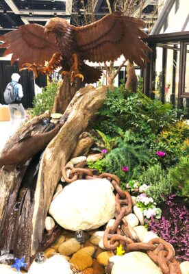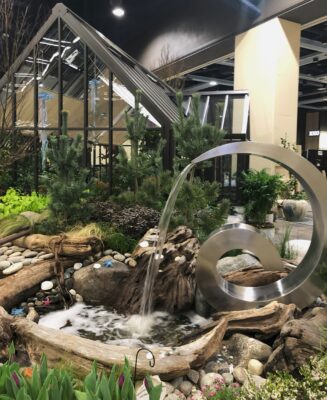 I’m always a fan of the display gardens at Seattle’s Northwest Flower and Garden Festival because they offer inspiration for creative ideas to take home and try. This year “Dreamscapes by the Sea” featured a Hartley Victorian glasshouse with double porticos that allowed showgoers to walk right through. It was nestled into a lush garden that surrounded it on all sides. “I think everyone who had a part in it went above and beyond,” said Deby Kohlwes, the garden’s designer and project manager.
