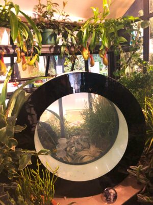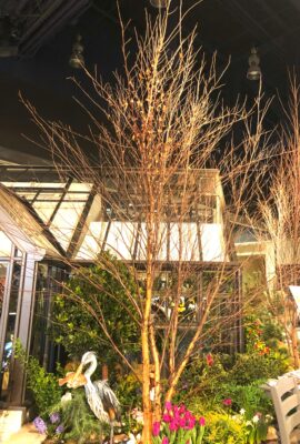 But my favorite indoor décor was a circular salt-water tank filled with live jellyfish, floating by the glass. I found out jellies always need a round tank. Otherwise, they will cluster in the corners of a regular tank and not move. The way this one was set up, they drifted on the current, and the plants outside looked like they were part of this underwater seascape. The effect was so soothing. In the bustle of the show, this glasshouse was a place of peace.