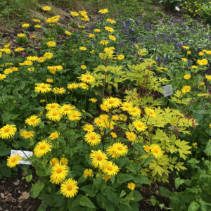 Pat Ryan, Education Specialist at the Alaska Botanical Garden, admires leopard’s bane (Doronicum spp.) for its cheerful yellow blossoms that appear in spring when little else is blooming. While it dislikes hot humid weather, it is a perennial in Alaska, Zone 4b. Pat says, “This year, with a cool spring, the blooms lasted for several weeks, with good, strong growth.” Pair it with late-season bloomers that come on as it fades. Sow leopard’s bane seed in a cool greenhouse.