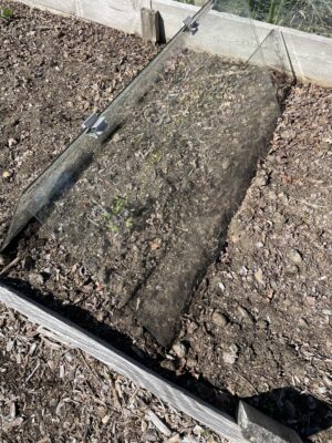 To combat this springtime issue, I use glass cloches to protect young plants from the winds. In America, gardeners often use glass or plastic bell jars as cloches, but these have disadvantages. For one thing, they need to be individually removed to water each plant. For another, the temperature inside them, because of their small size, can overheat quickly in bright sunshine. Instead I use large panes of glass as garden cloches, as is done in England.