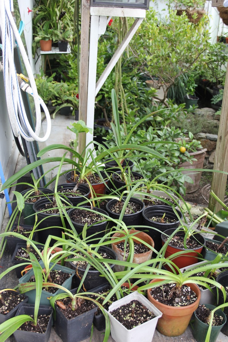 Because the temperature in my greenhouse can reach 140oF on a sunny summer day, most of my greenhouse plants spend the summer on my patio. Come fall, however, these plants must be moved back into the greenhouse. For them, it’s rather like returning to an indoor home after enjoying summer at the cooler, breezier beach.