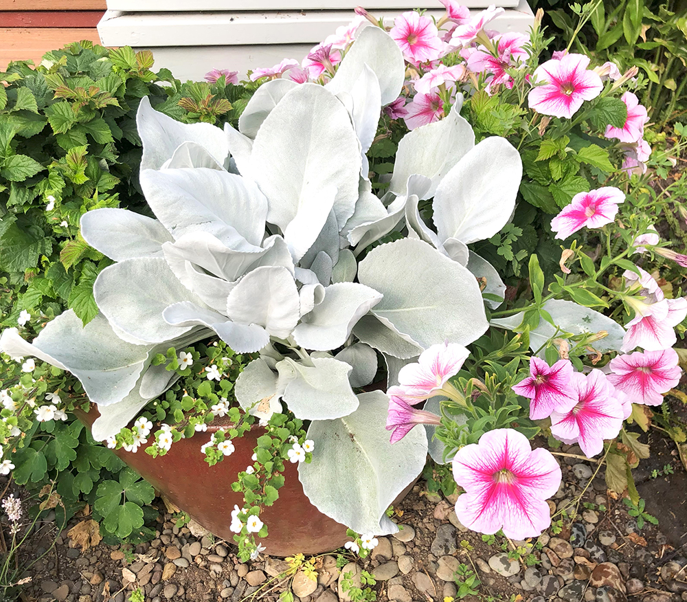 You can add silver foliage as focal points in garden beds, or to mark pathways. Silvers in containers will extend your nighttime enjoyment of your garden up close. The bonus—they look great in the daytime as well, and blend beautifully with their colorful neighbors. And, unlike most white flowers, the pale foliage lasts throughout the growing season. Here are silver suggestions, some of which can be propagated in your greenhouse.