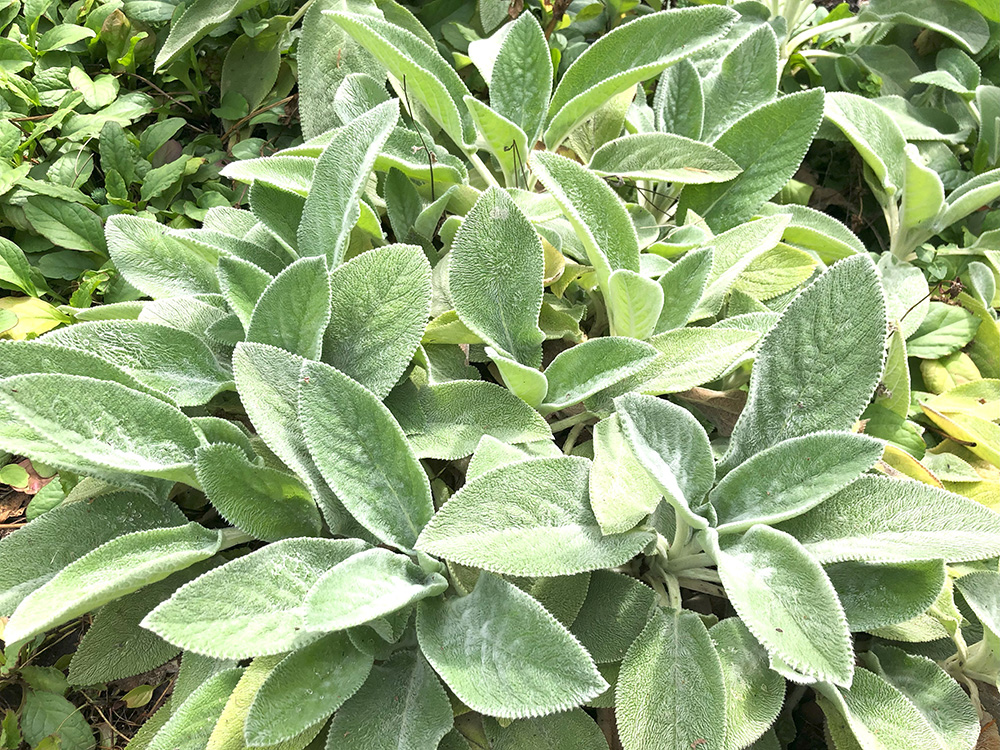 Stachys byzantina ‘Helen Von Stein’ – These lambs ears show off bigger fuzzy gray leaves than the species, and rarely flower. They are low-growing, at less than a foot, and spread eighteen inches across. Great in tough situations in sun, and they are easily divided, once established. You can root the offshoots in the greenhouse. Zones 4-9.