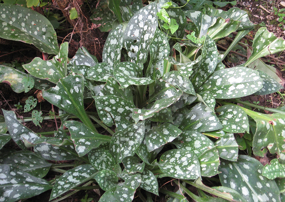 Pulmonaria spp. and cvs. – Lungworts can shine silver in shade, part shade, and even more sun if well watered. At around a foot tall and wide—some cultivars are bigger—the tough leaves survive from Zones 3-9. Although there are ones with green leaves, look for the highly decorative spotted leaves that are guaranteed to glow. You can divide in fall, and grow on starts in the greenhouse.