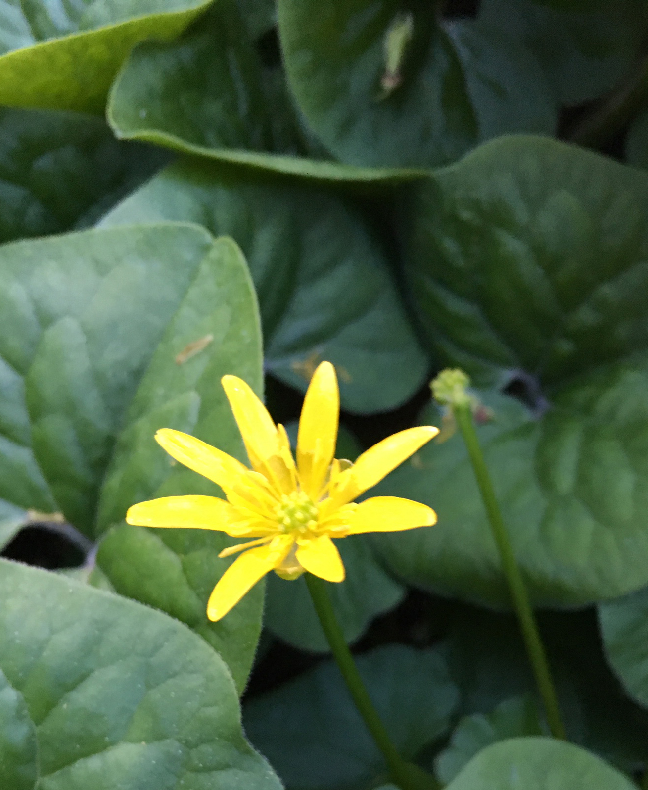 My Spidey sense tingled with the feeling that, to a gardener, can only mean “weed!” There, amid the ginger’s heart-shaped leaves, I spotted one leaf that was just a little bit too round. Was it the dreaded creeping Charlie (Glechoma hederacea), with its insidious slender stems that snake among the grass blades and shade perennials? No, there were no scallops on this leaf’s margins. This was something even worse: lesser celandine (Ficaria verna).