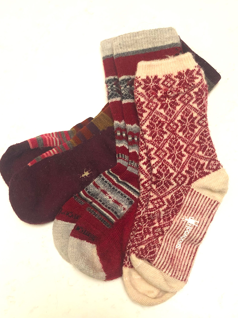 Farm-to-Feet presents a wide selection of merino wool-blends. One of my favorites is the Hamilton with its light cushioning and cheerful Fair Isle design. They also have a satisfaction guarantee, but it specifically excludes dryer loss and dog-chewed socks.