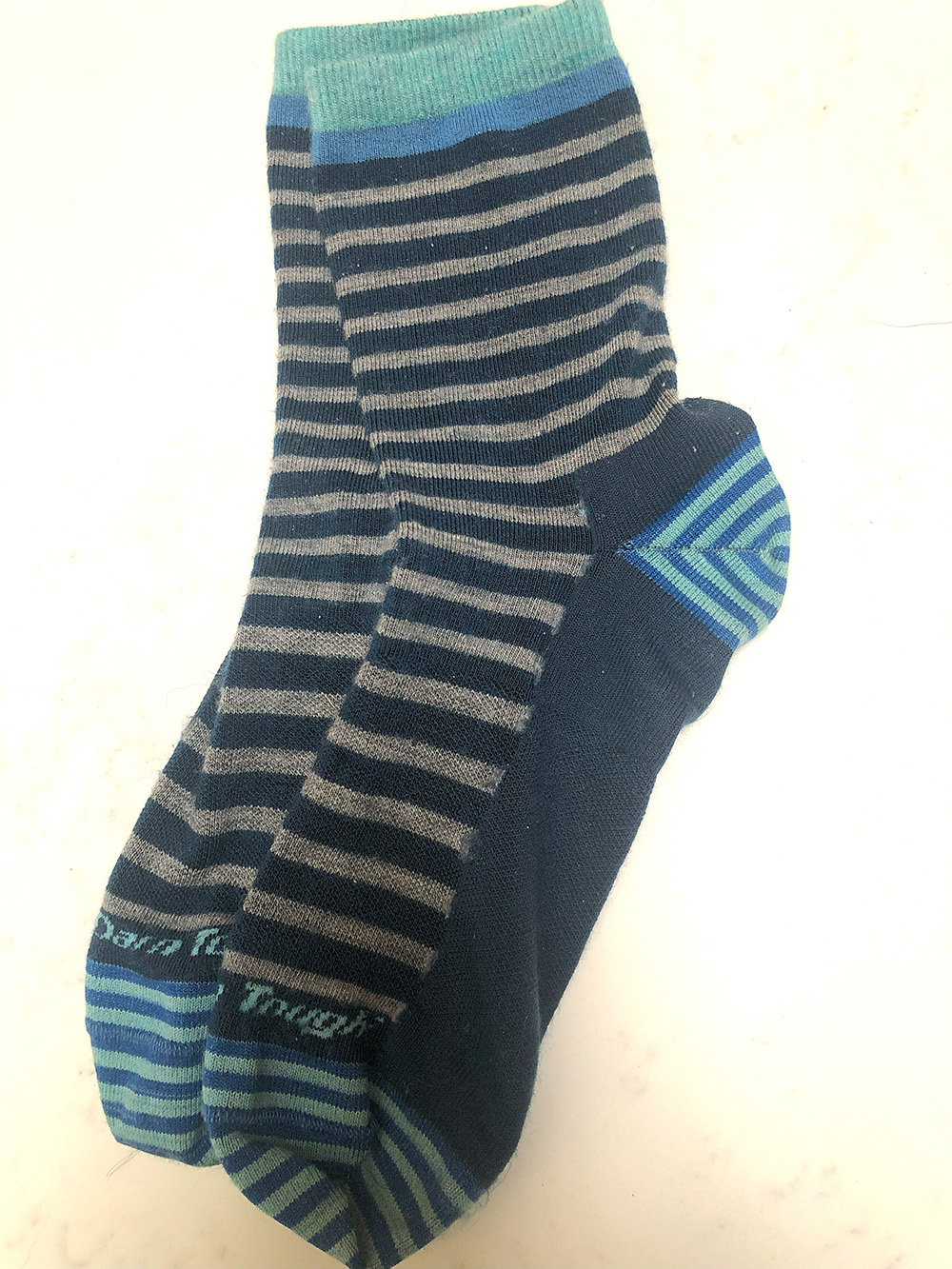 Darn Tough offers merino wool-blend socks for everything from no-see-em footies to heavy-weight hunting boot socks. The Mystic Stripe Crew is one of my favorites. Best of all, if they wear out, you send them back for another pair—just keep the packaging. My friend‘s Darn Tough sock ripped at the top hem. She sent them back, and voila—a new pair arrived.