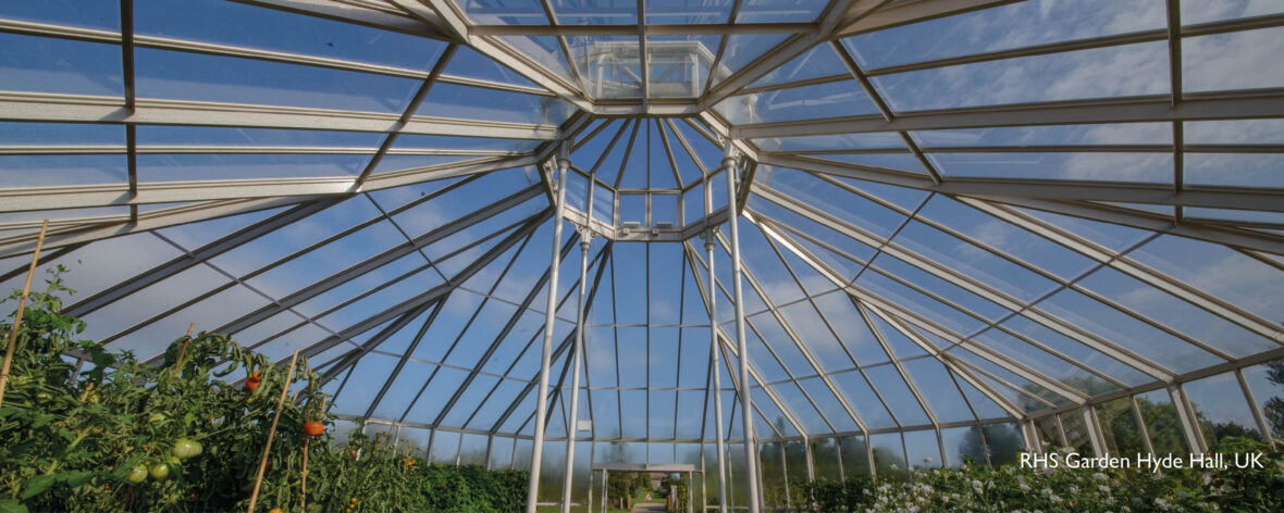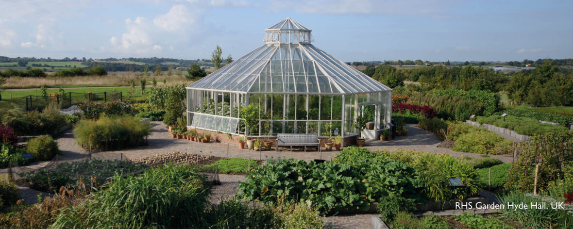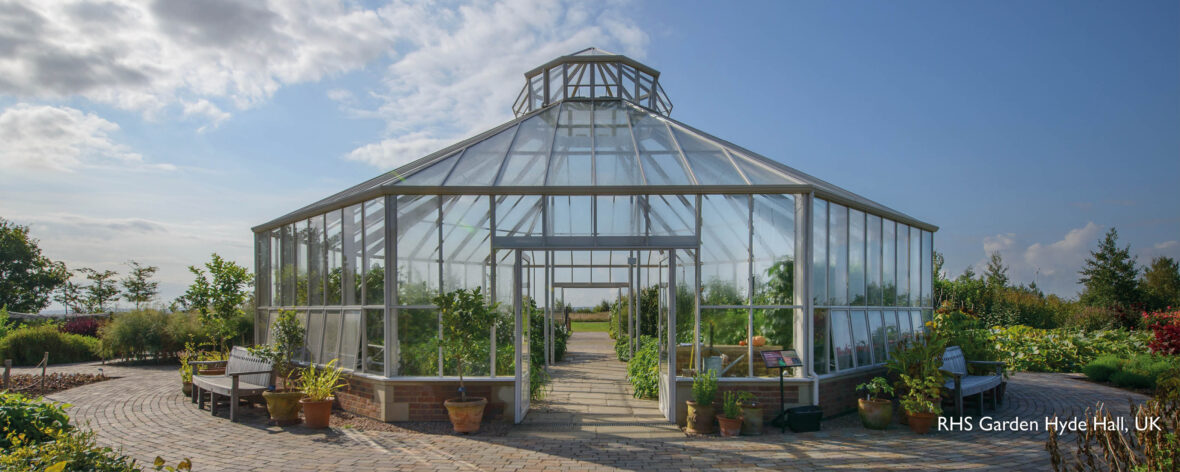 With a unique octagonal design, stately roof lantern and 14 meter span the new RHS Hyde Hall Glasshouse provides a truly arresting landmark visible far beyond the new edible gardens. The glasshouse includes two sets of very large doors running from north to south.