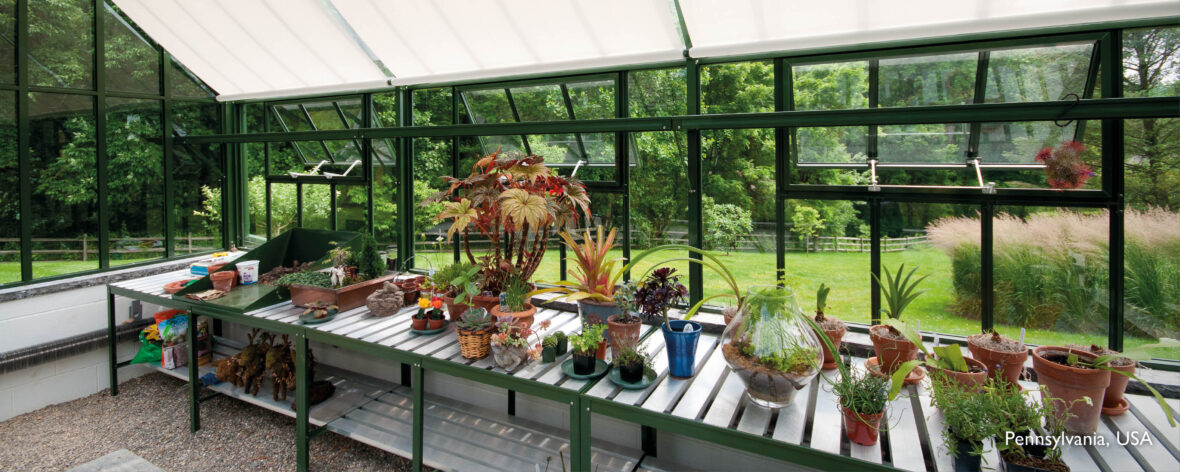 One often associates a gallery with an element in architecture: a long spacious hallway frequently decorated with sculptures, paintings and frescoes. The Hartley Victorian Gallery is your very own horticultural Gallery where you can enjoy cultivating, growing, attending to, or purely enjoying a display of your own potted plants of fruits, vegetables or flowering exotics. As with other Hartley structures there is an optional choice of many accessories or you can simply create your own interior.