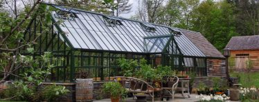 A three-quarter span custom made Victorian Lean to Greenhouse in a kitchen garden.